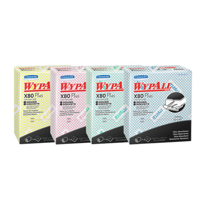 Los paños de limpieza WYPALL® X80 son paños ultra-absorbentes para trabajo pesado.